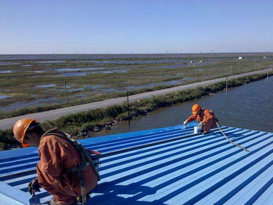 對(duì)于金屬屋面,需要保證其干凈整潔,并且使用砂紙將生銹的地方打磨干凈,再涂上基層涂料?梢赃x擇噴涂或刷涂的方式,每次涂刷要保證前一次已經(jīng)干透。對(duì)于金屬屋面天溝縫的地方,可以做局部的防水,再刷上涂料。